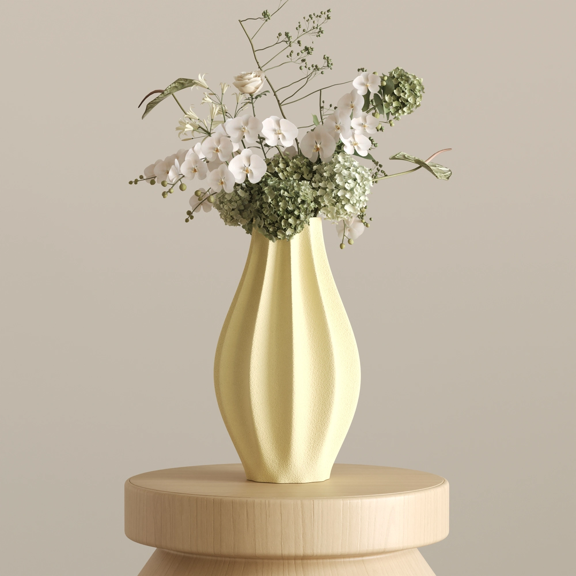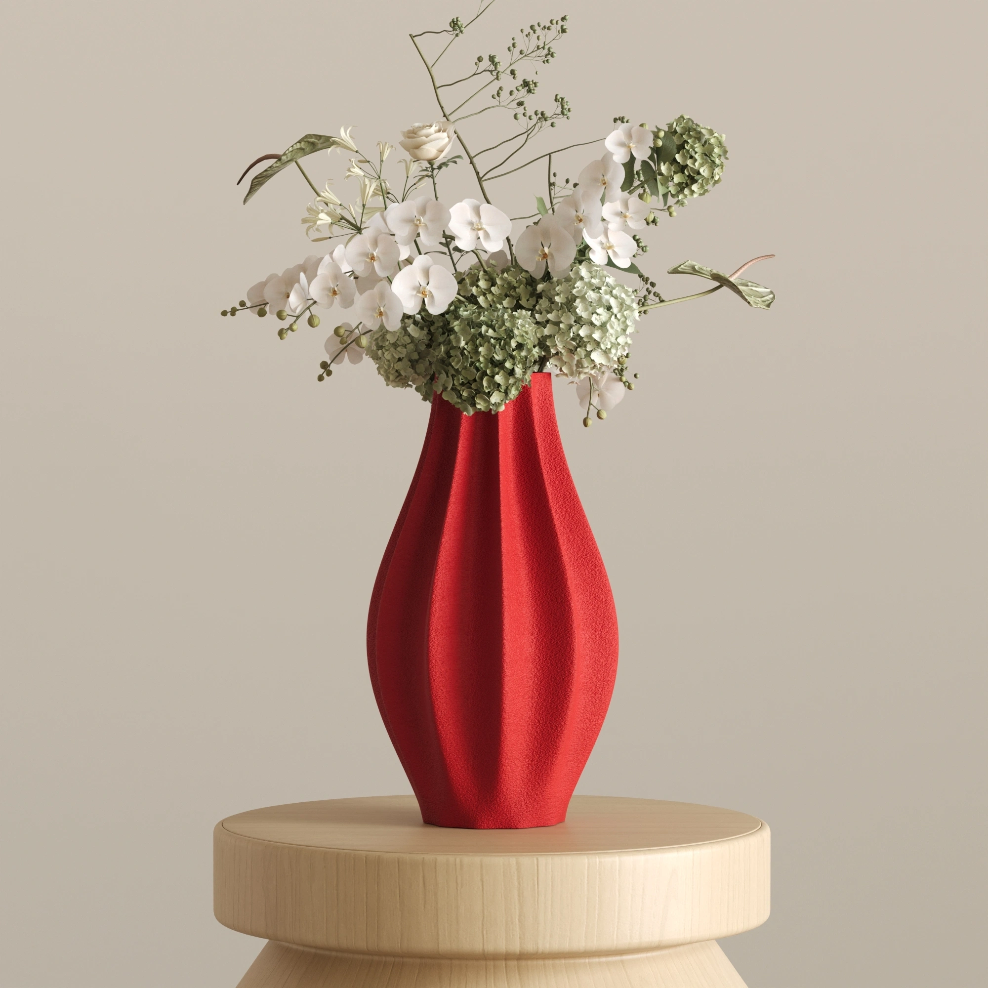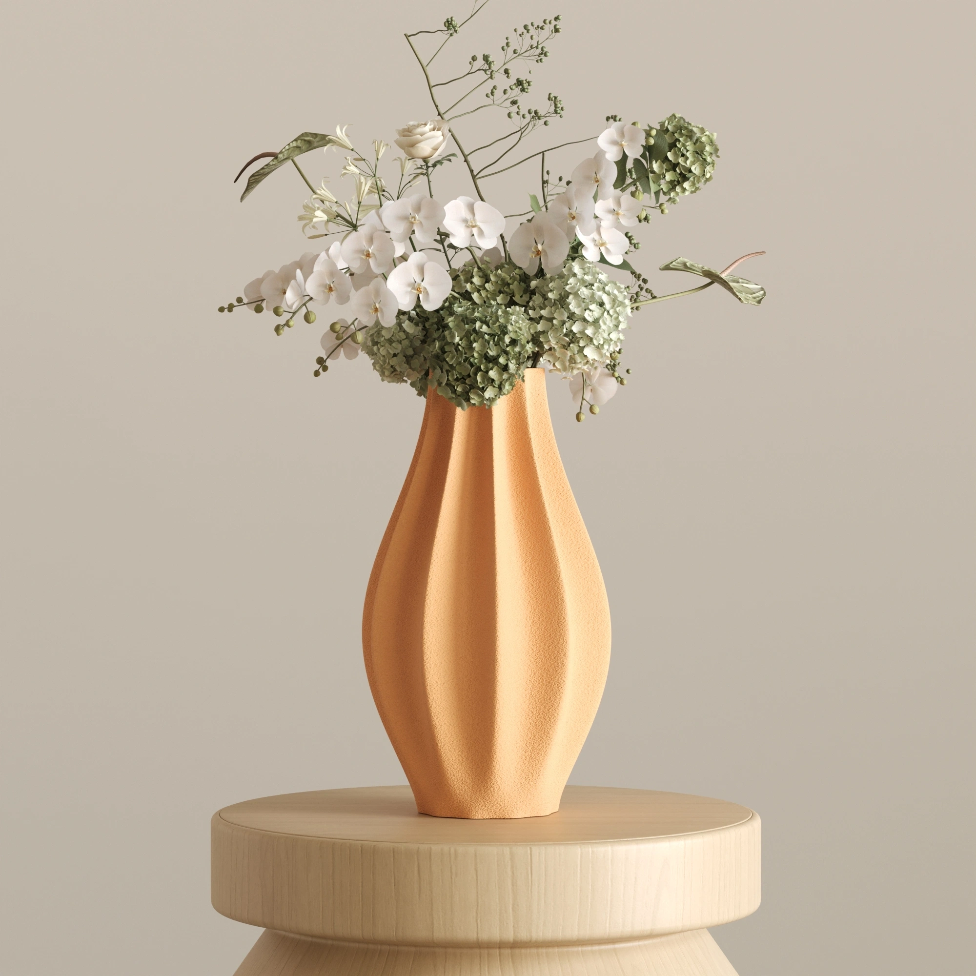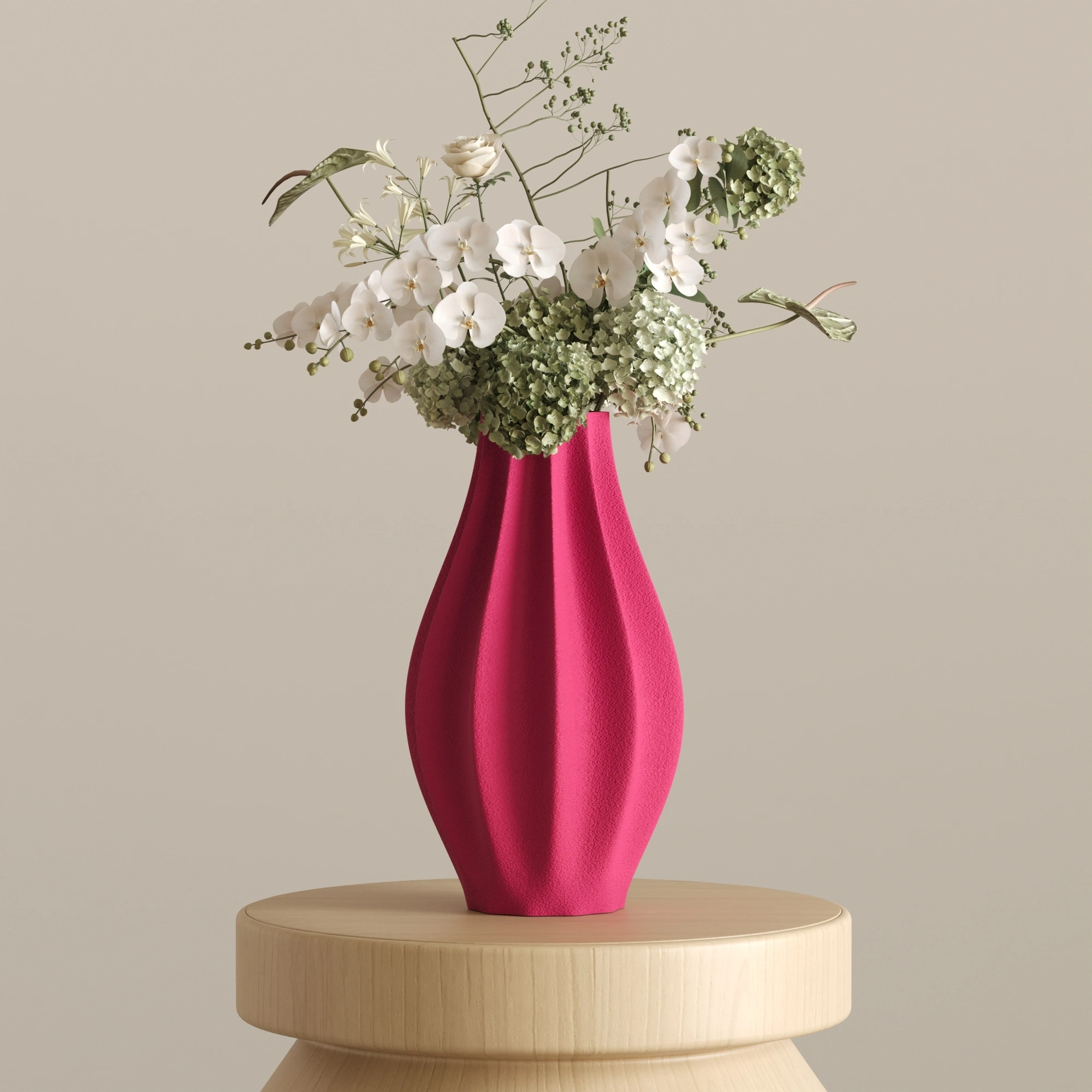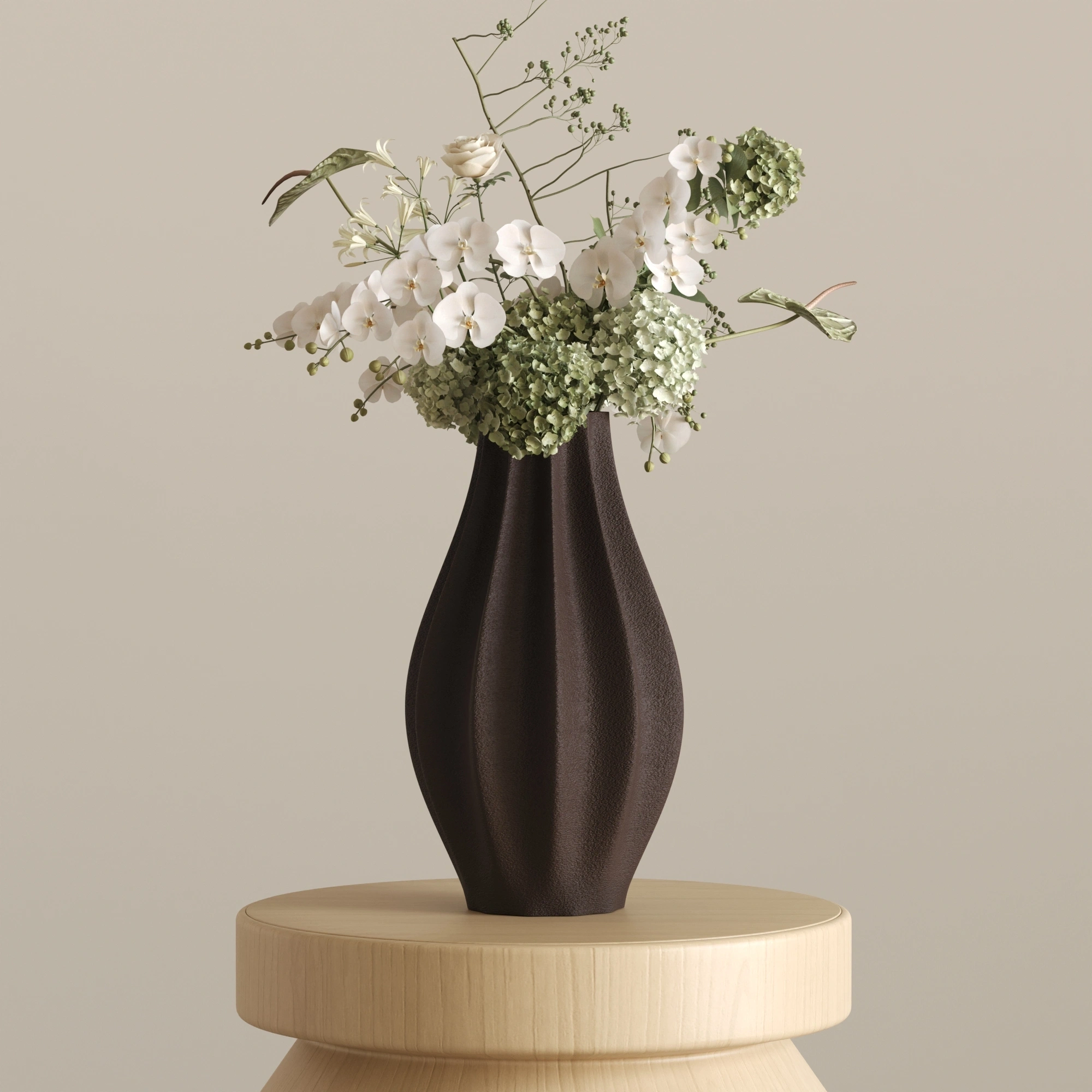 Sıradanlığı reddeden bu asimetrik ve heykelsi silüet, ışıkla her buluştuğunda yüzeyindeki yumuşak dalgalanmalarda büyüleyici gölge geçişleri yaratır. CURE, içine ekleyeceğiniz zarif çiçekleri ön plana çıkarırken, tamamen boş bırakıldığında bile tek başına modern bir sanat eseri (statement piece) olarak göz doldurur.