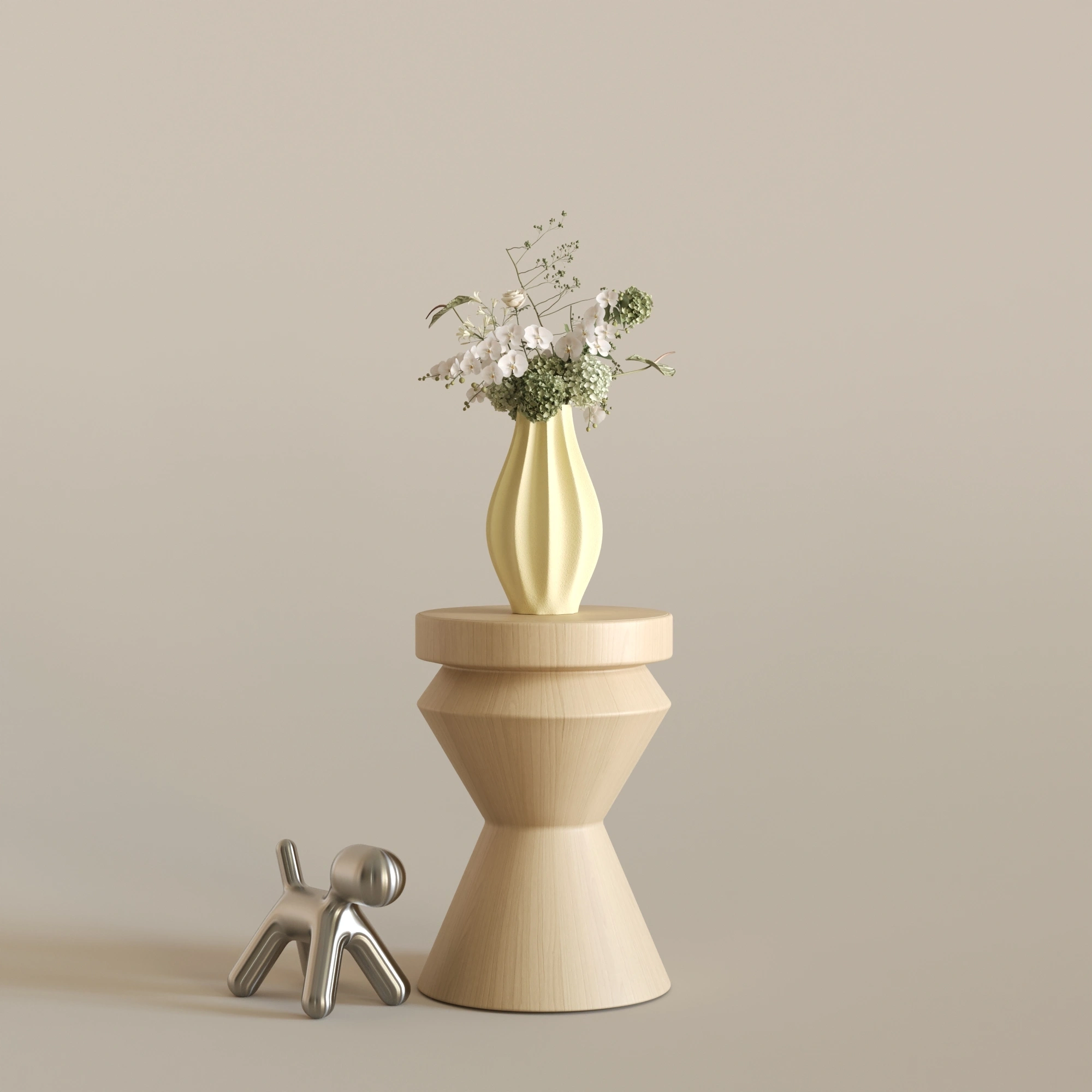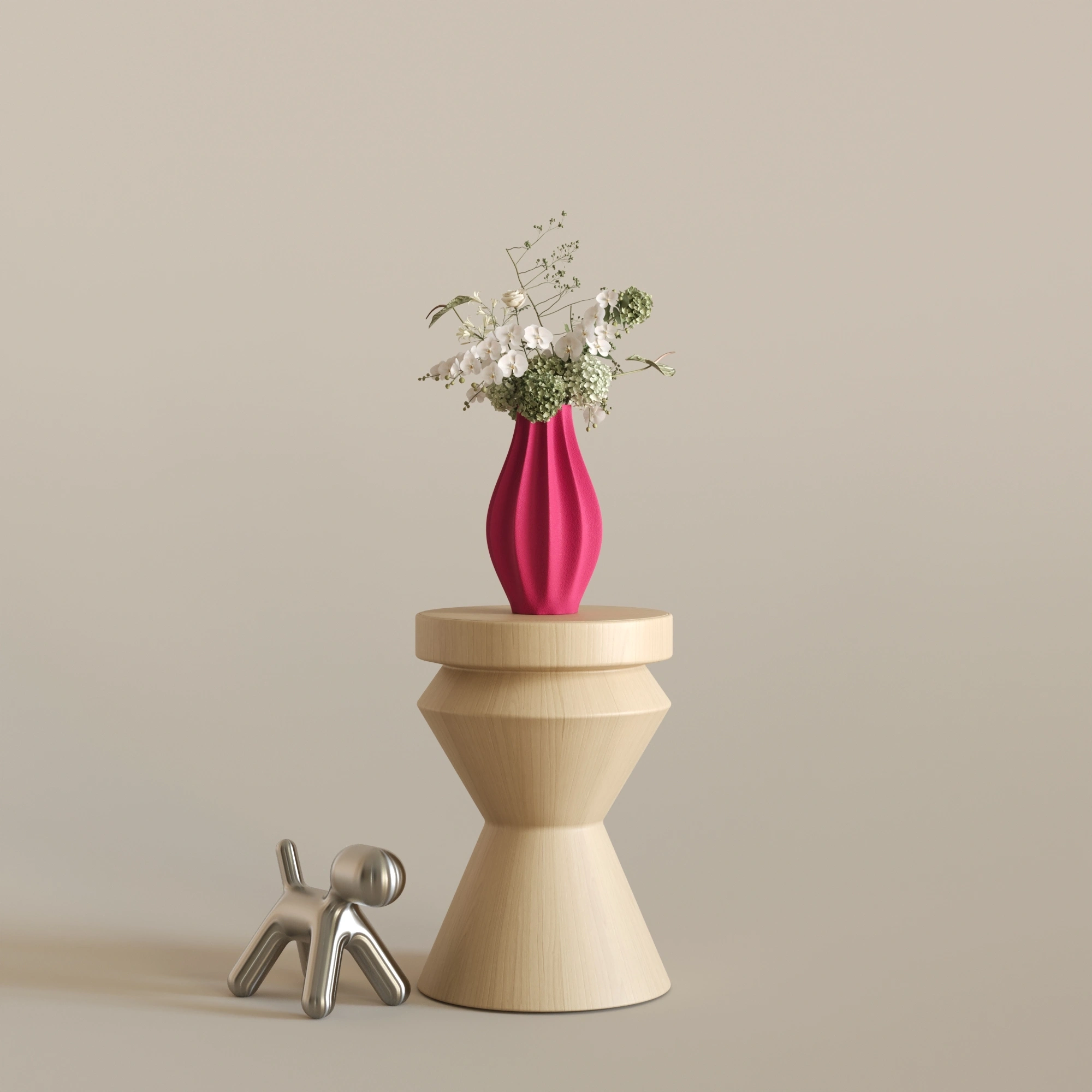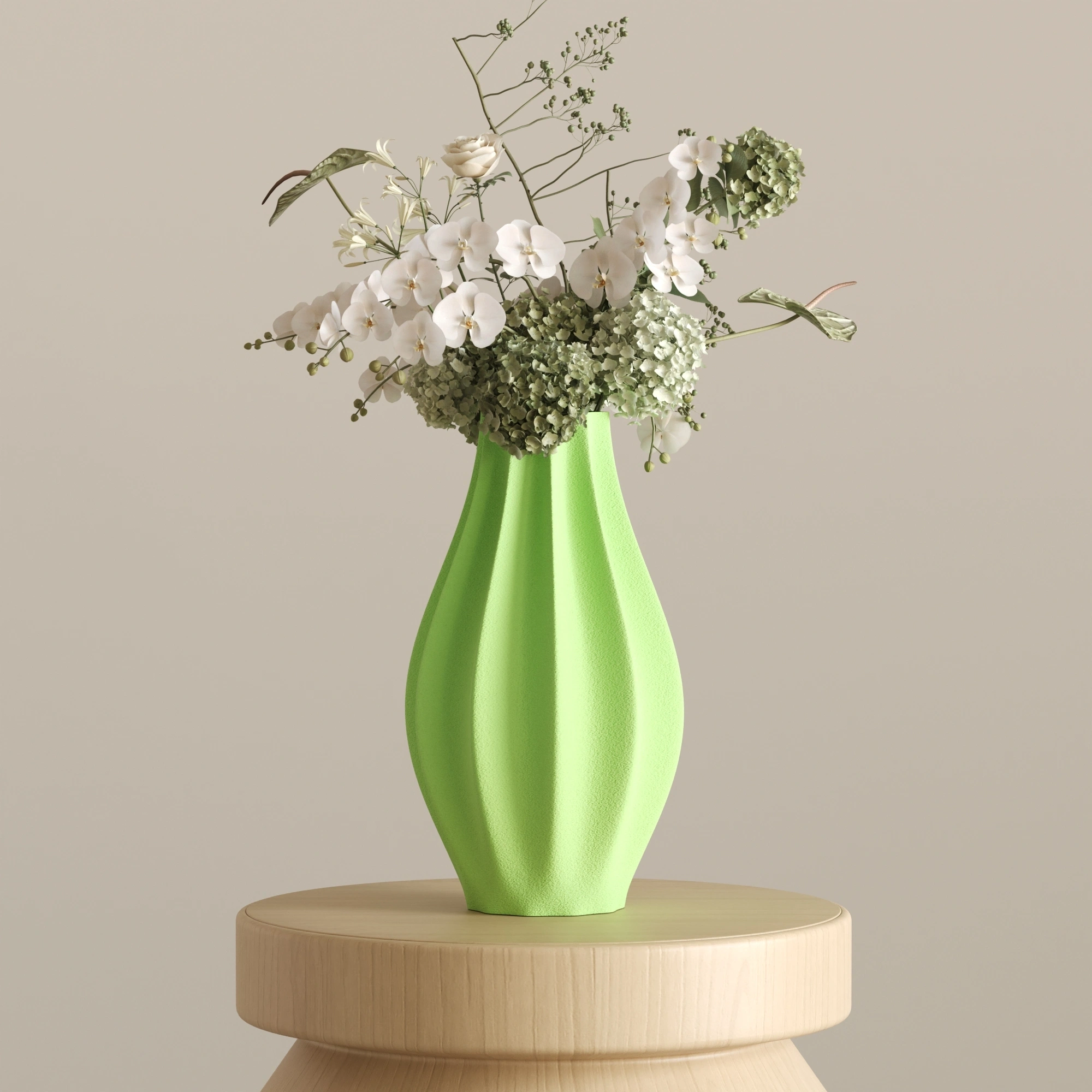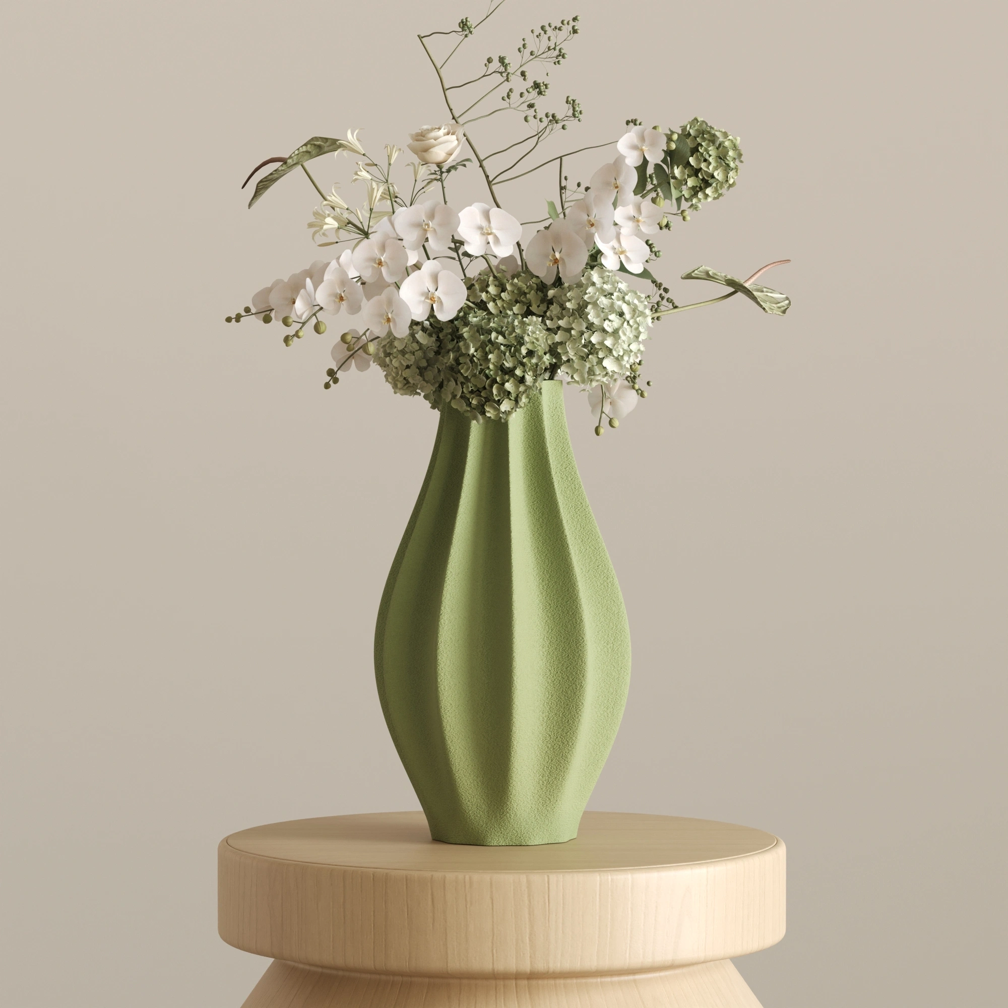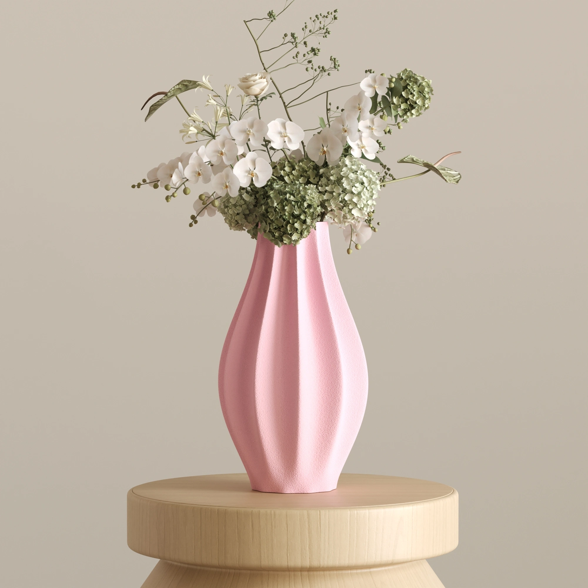 Sıradanlığı reddeden bu asimetrik ve heykelsi silüet, ışıkla her buluştuğunda yüzeyindeki yumuşak dalgalanmalarda büyüleyici gölge geçişleri yaratır. CURE, içine ekleyeceğiniz zarif çiçekleri ön plana çıkarırken, tamamen boş bırakıldığında bile tek başına modern bir sanat eseri (statement piece) olarak göz doldurur.