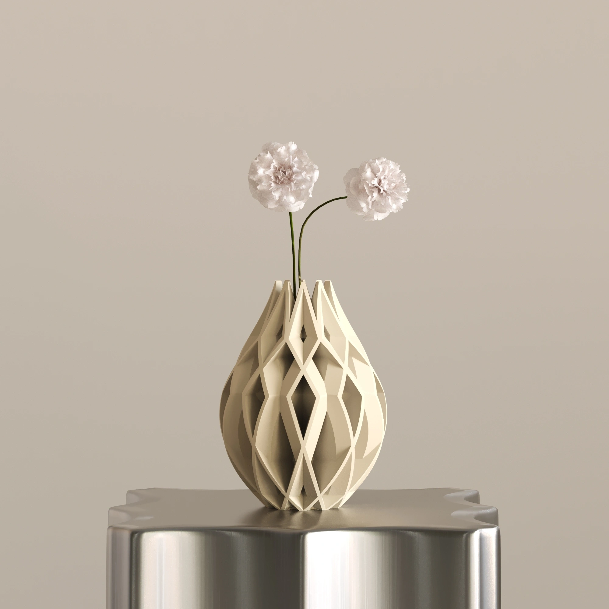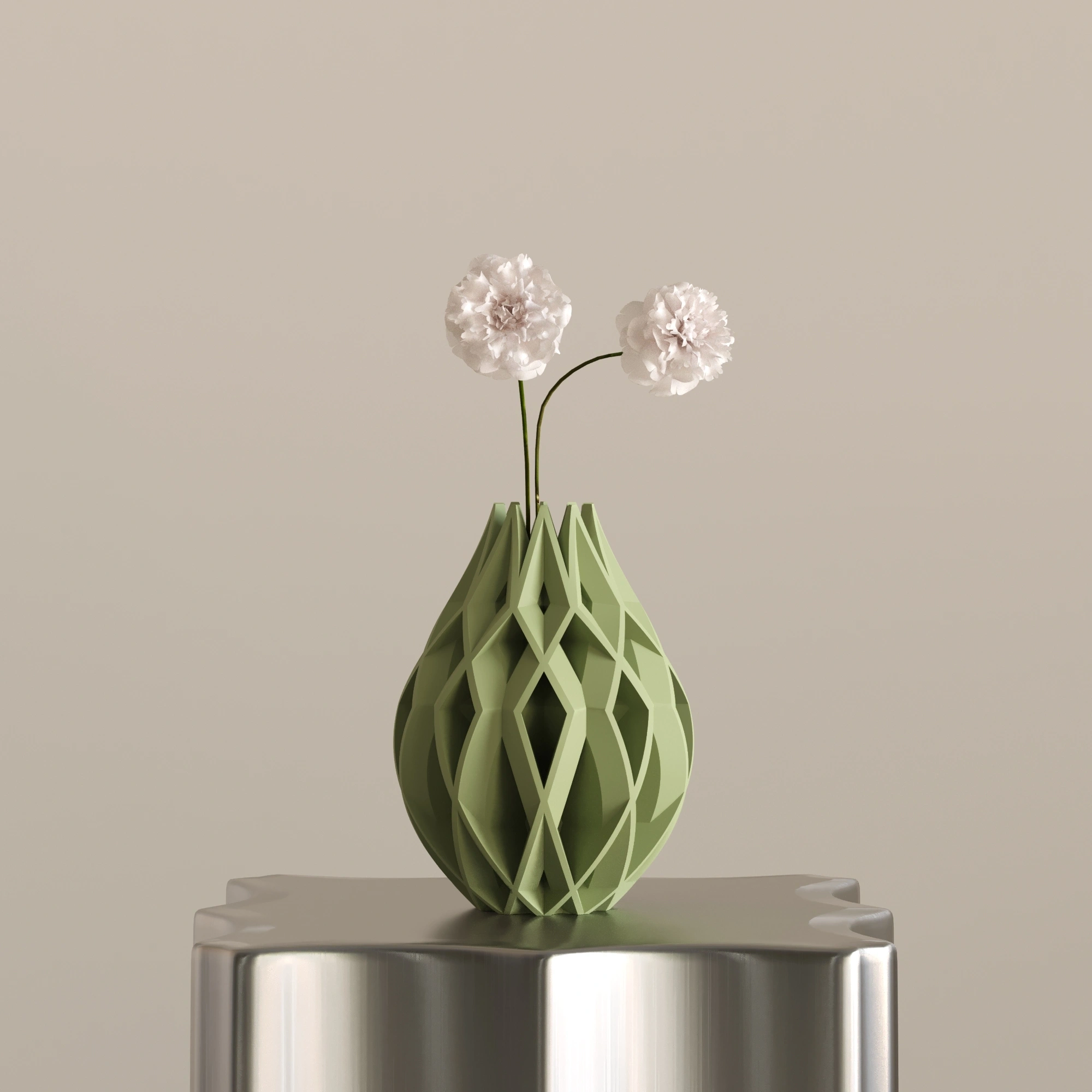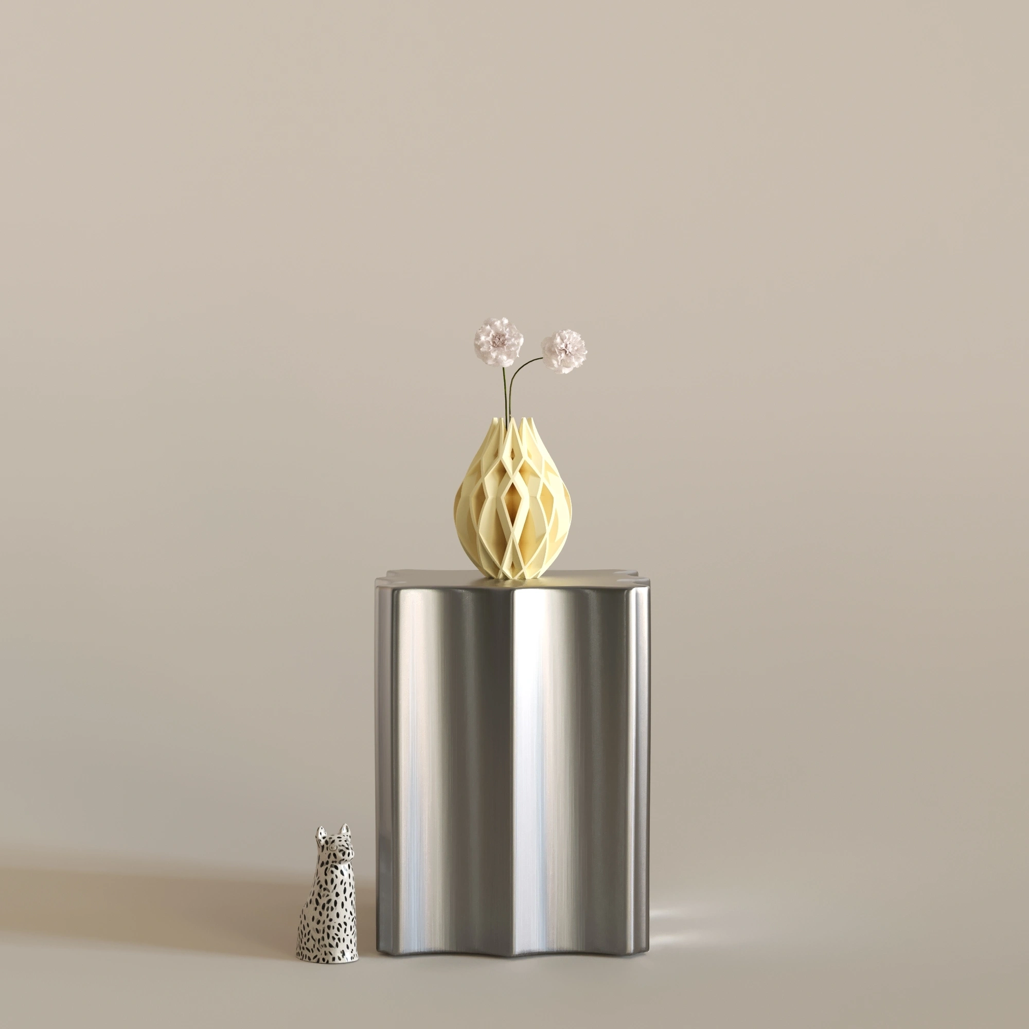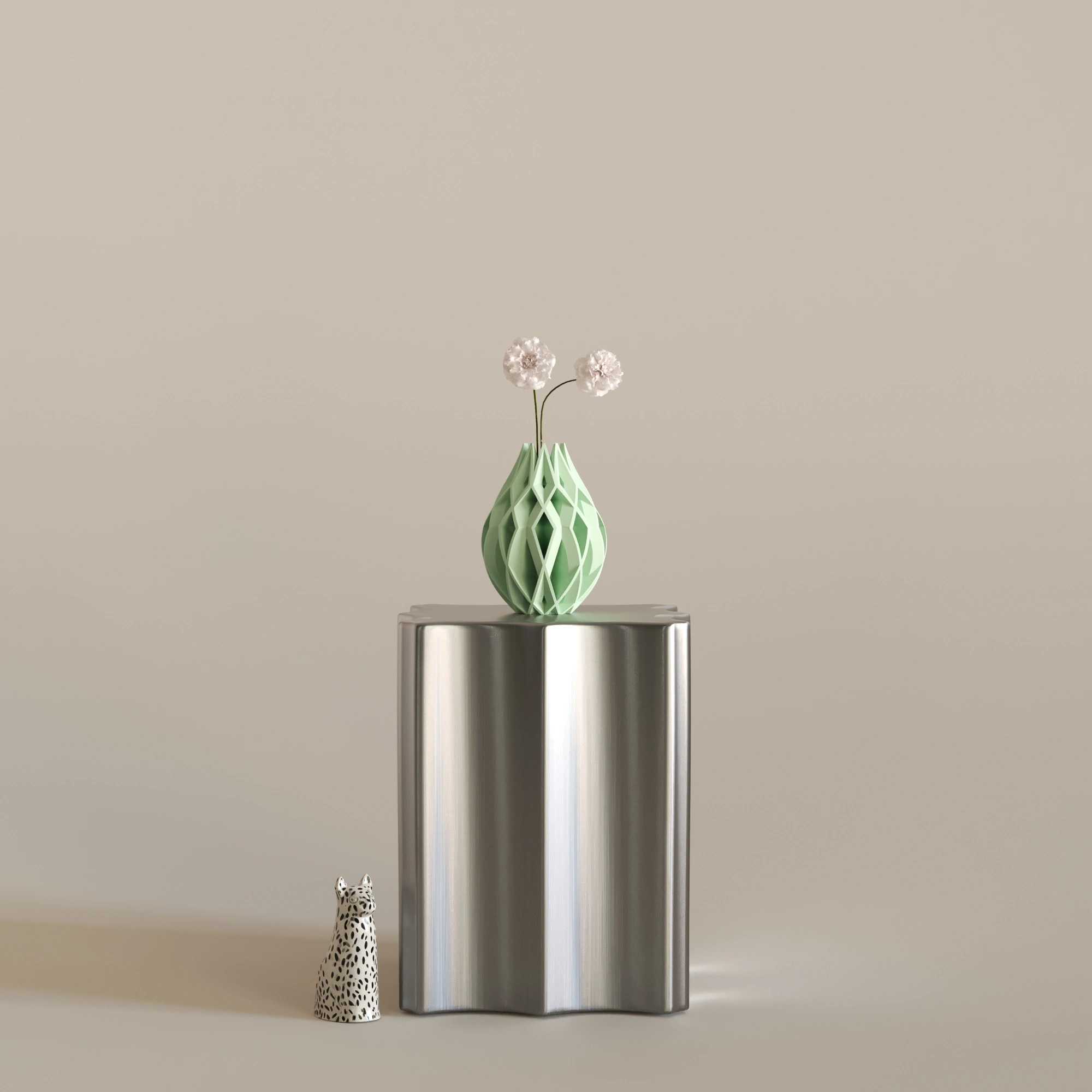 Figura 3, 23 cm x 30 cm ölçülerindedir. Bitkisel bazlı, doğada çözünebilen biyopolimer PLA malzemeden üretilmiştir. Cam veya seramik değildir. Hafif yapısına rağmen dayanıklı ve uzun ömürlü kullanım sunar. Dekoratif amaçlı tasarlanmıştır. Modern, sanatsal ve heykelsi dekorasyon anlayışını benimseyen yaşam alanları için güçlü ve etkileyici bir dekorasyon objesidir.
