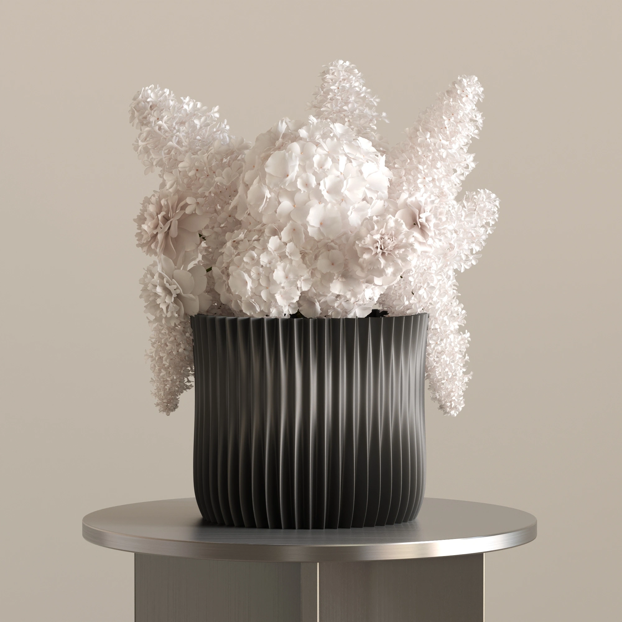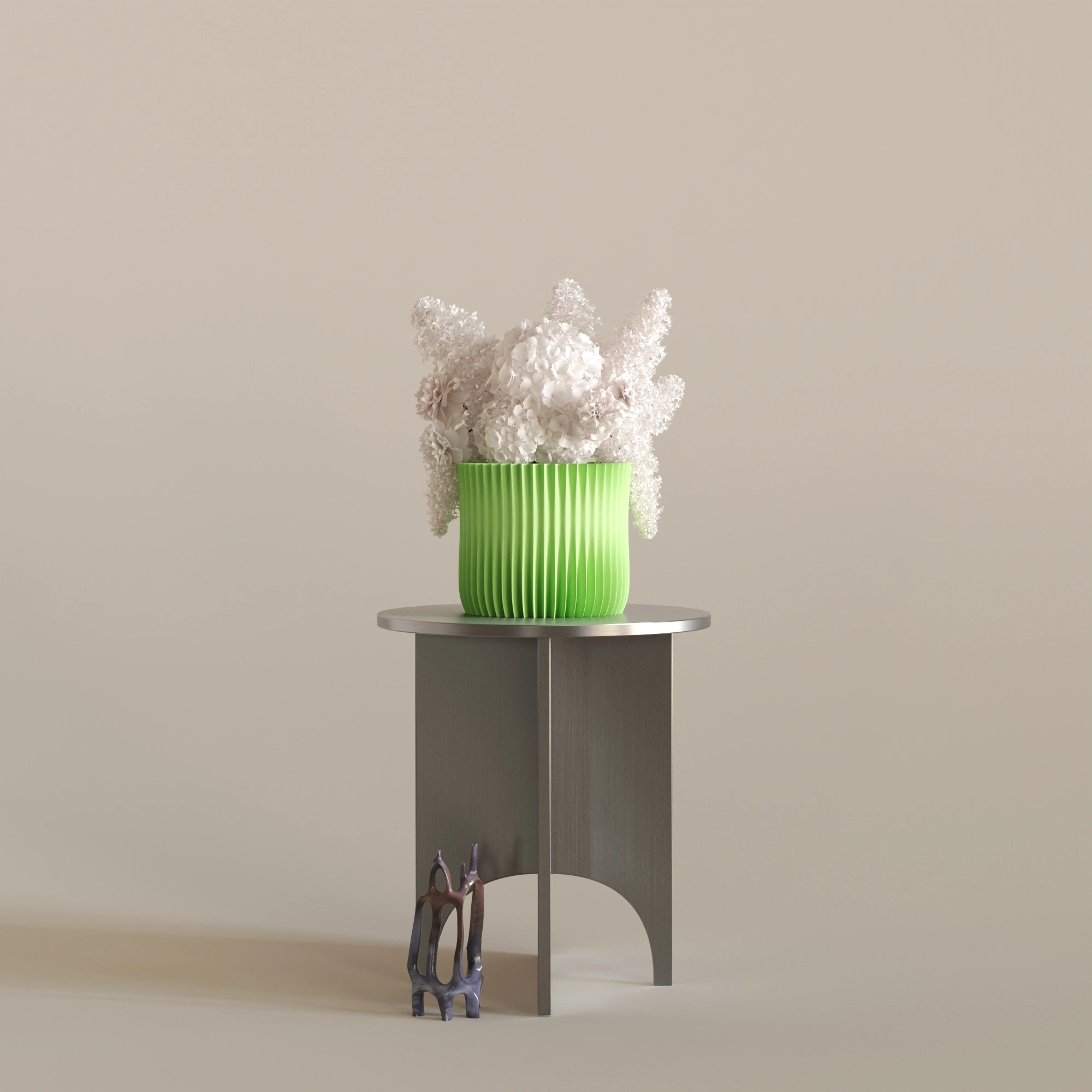 GLAZE'in yüzeyindeki yumuşak dalgalanmalar, mekanın ışığını yakalayarak üzerinde kusursuz parlamalar yaratır. Bu sayede içindeki çiçeklerden bağımsız olarak, tek başına bir modern sanat objesi gibi mekanın odak noktası olmayı başarır.