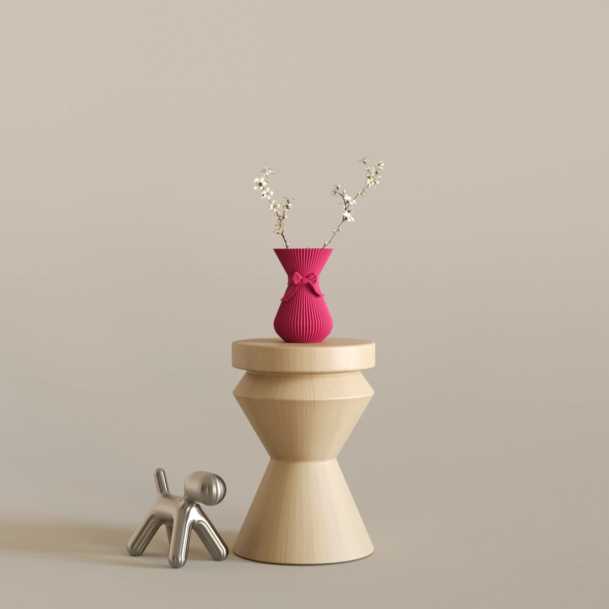 Nodus, 13 cm x 13 cm x 20 cm ölçülerindedir. Bitkisel bazlı, doğada çözünebilen biyopolimer PLA malzemeden üretilmiştir. Cam veya seramik değildir. Hafif yapısına rağmen dayanıklı ve uzun ömürlü kullanım sunar. Dekoratif amaçlı tasarlanmıştır. Modern, minimal ve heykelsi dekorasyon anlayışını benimseyen yaşam alanları için dengeli ve zarif bir dekorasyon tamamlayıcısıdır.