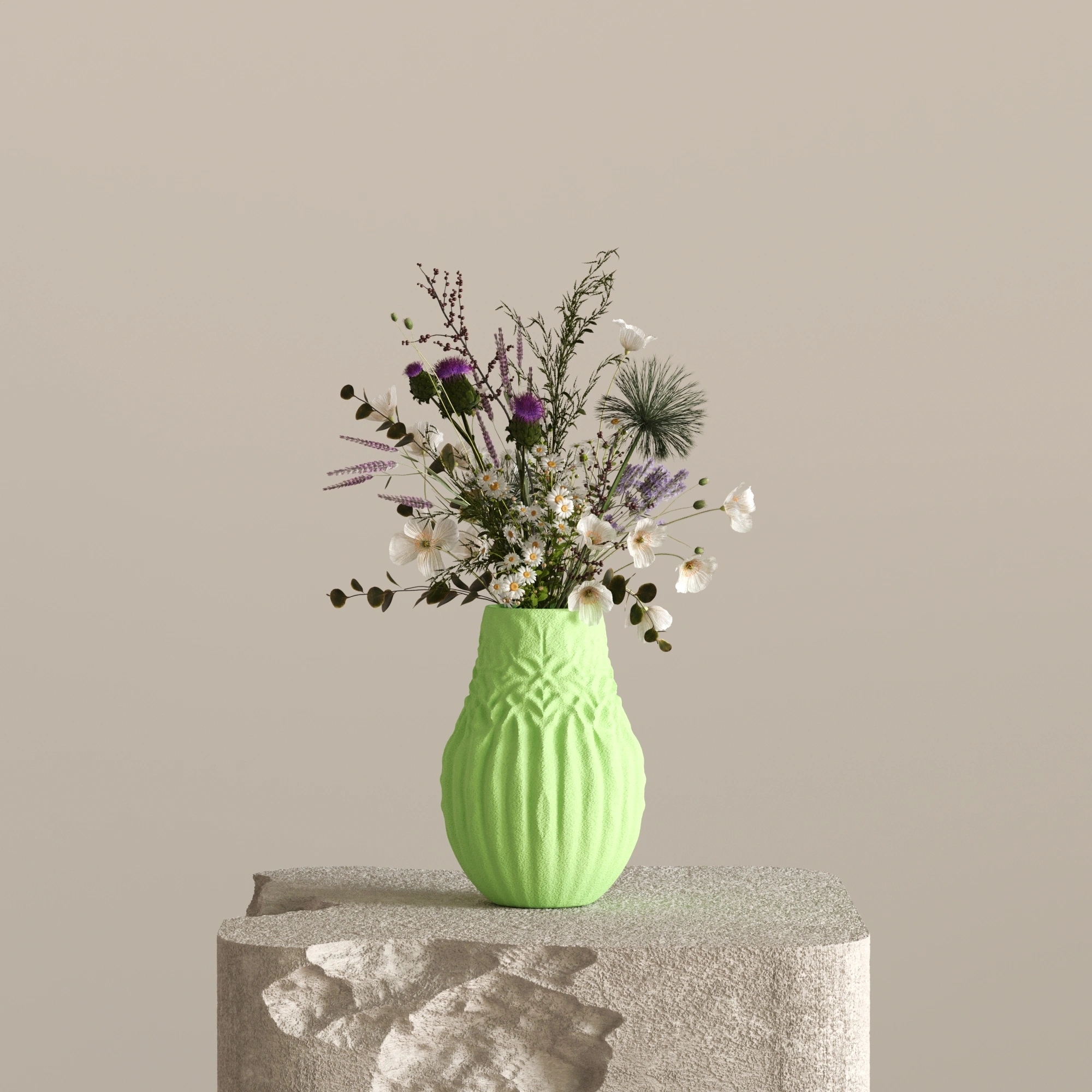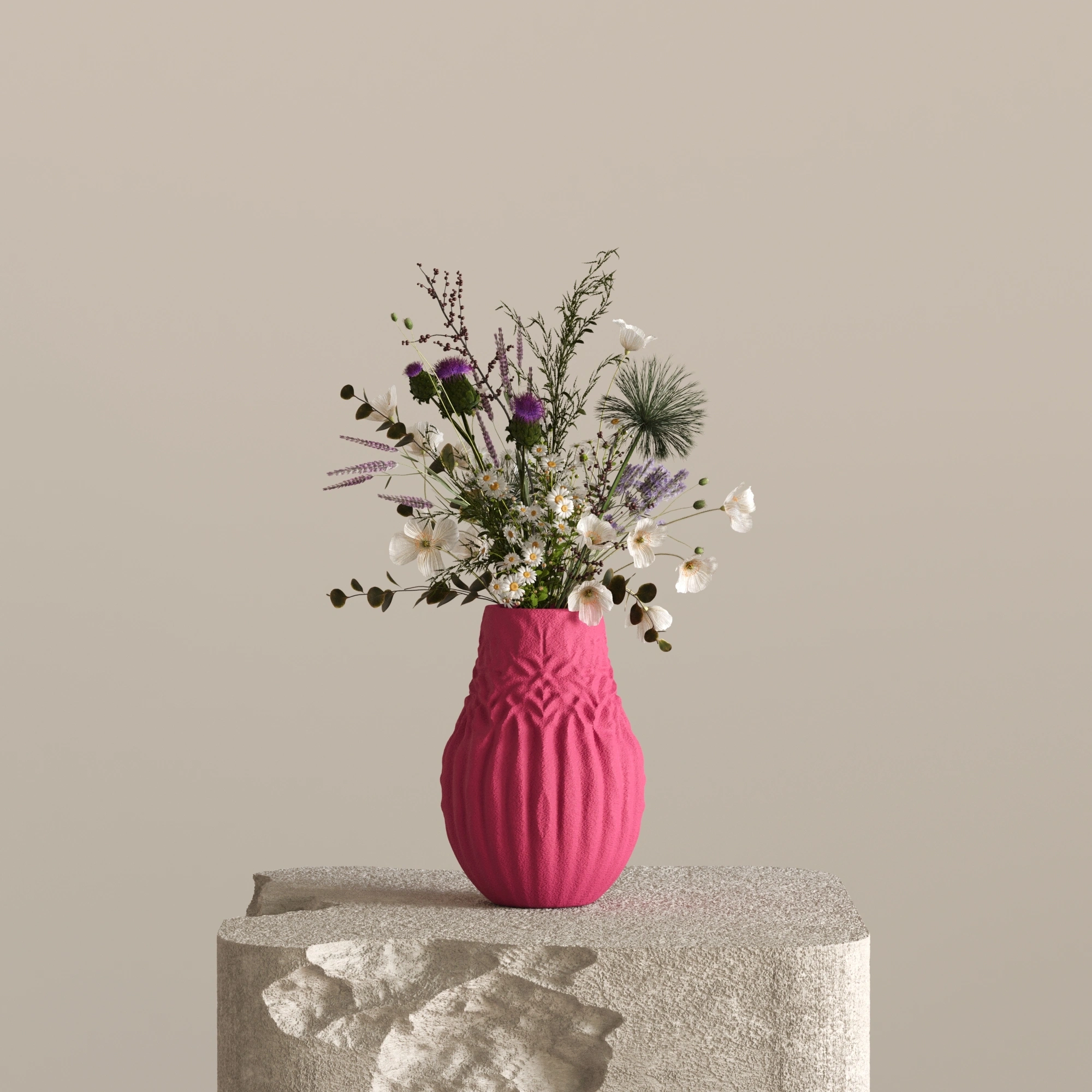 Göz yormayan net çizgileri ve yere sağlam basan hacimli yapısı sayesinde PITH, mekanınızda sade ama güçlü bir odak noktası oluşturur. Daralan pratik boyun yapısı, içerisine koyacağınız çiçeklerin her zaman derli toplu ve şık durmasını sağlar.