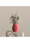 İlhamını bitkilerin gövdelerindeki ince ve ritmik dokulardan alan PITH Tasarım Dekoratif Vazo, doğanın basit ama kusursuz matematiğini masanıza taşıyor. Yukarı doğru zarifçe daralan dolgun (chubby) formu ve yüzeyini saran ince dikey yivler, vazoya sadece estetik bir doku değil, aynı zamanda heykelsi bir derinlik kazandırıyor.