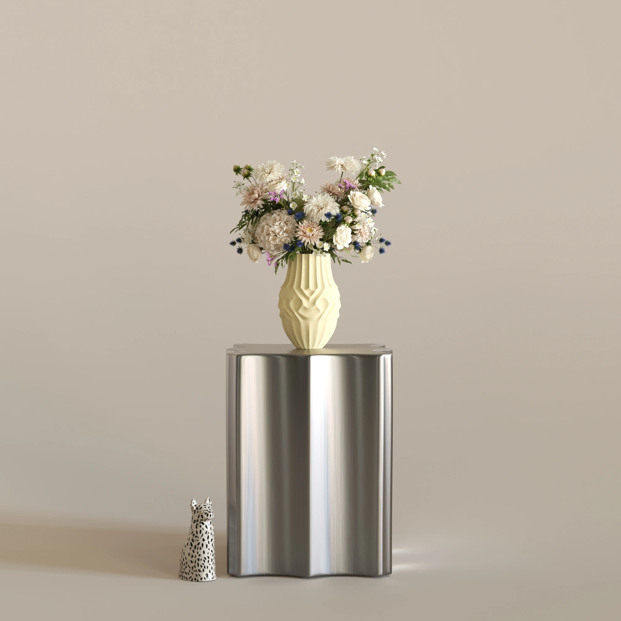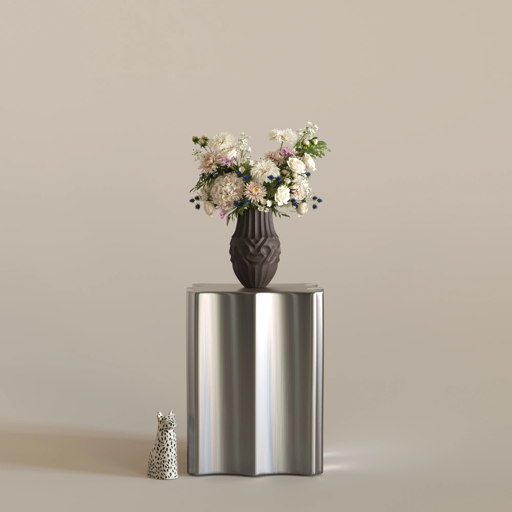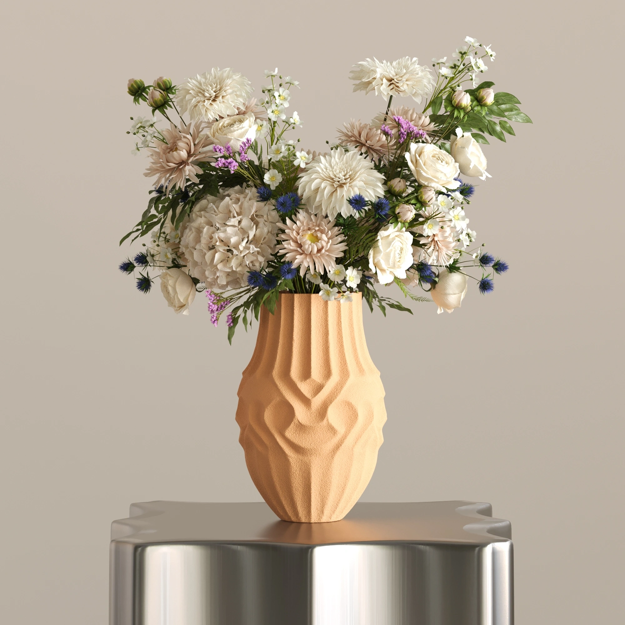 Gereksiz hiçbir detaya yer vermeyen SOOT, tok ve silindirik formuyla yere sağlam basıyor. Dikey oluklu yapısı ışığı eşit şekilde kırarak, içerisine koyacağınız en basit bir çiçek dalını veya pampa otunu bile profesyonel bir tasarıma dönüştürüyor. Sadece işlevsel değil, tek başına da güçlü bir odak noktası.