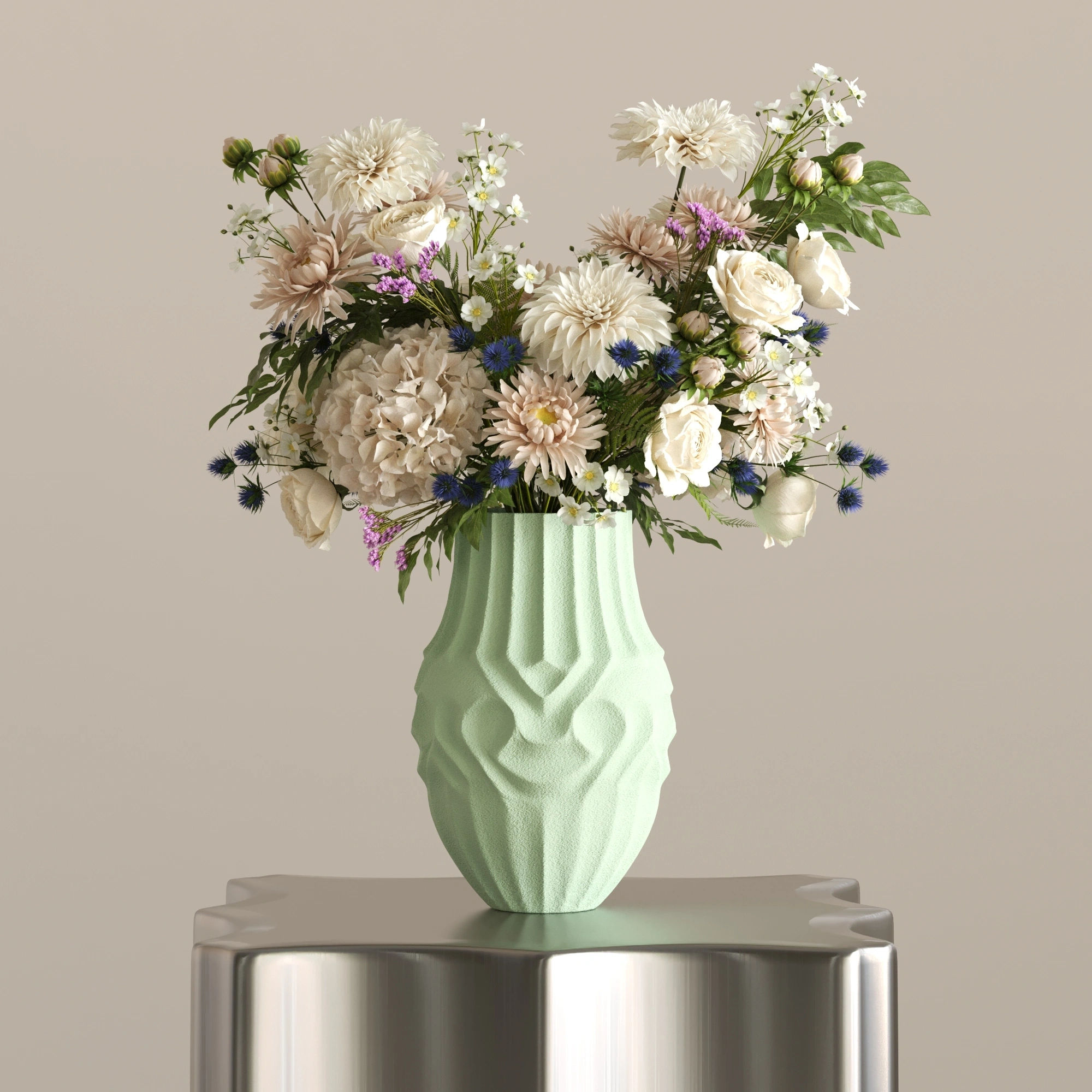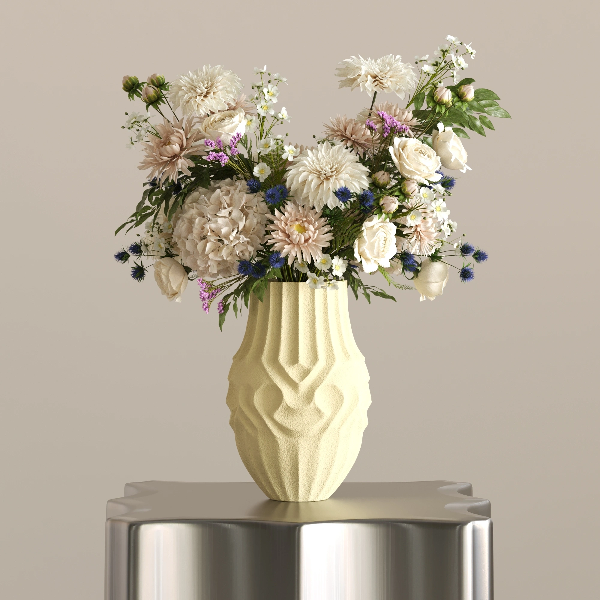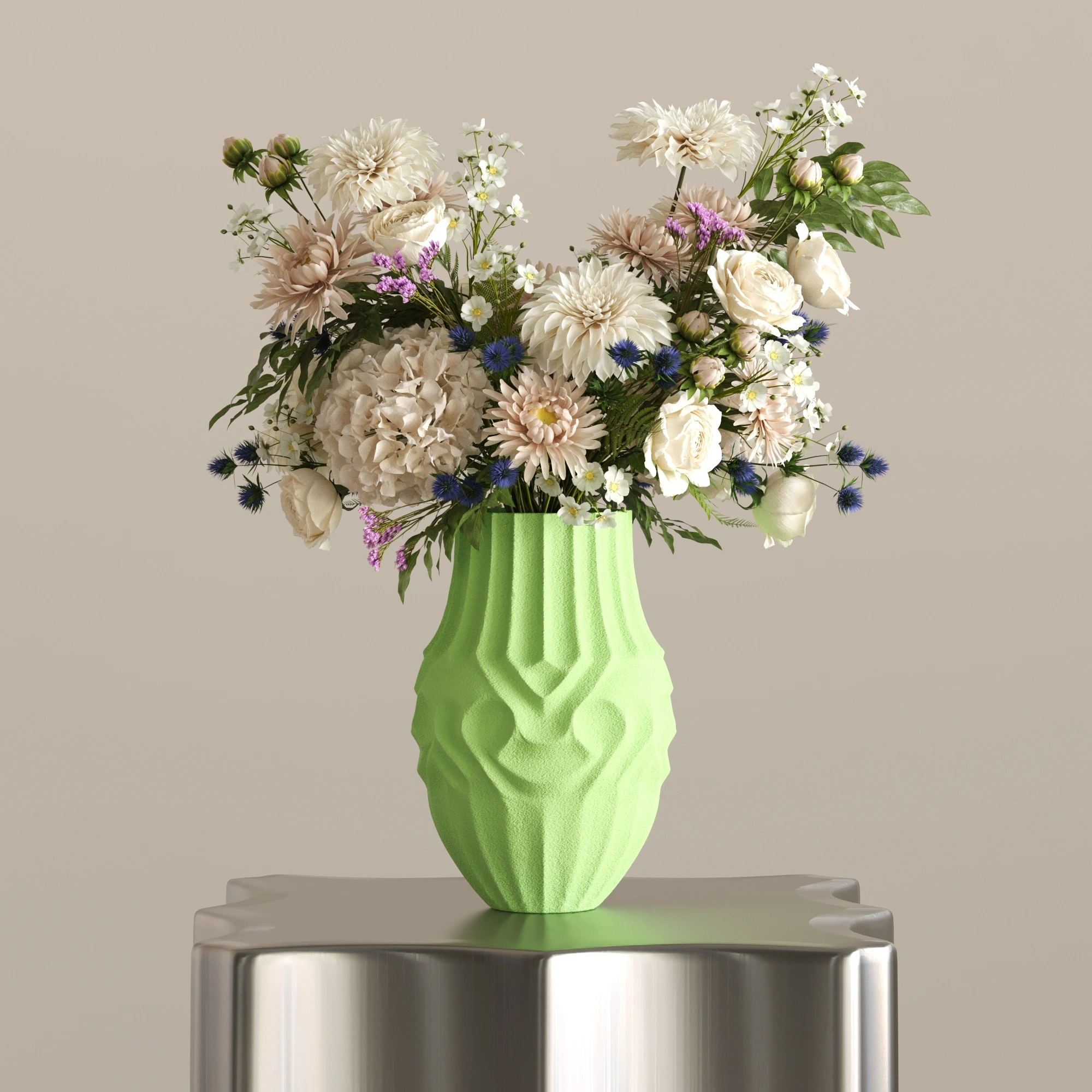 Gereksiz hiçbir detaya yer vermeyen SOOT, tok ve silindirik formuyla yere sağlam basıyor. Dikey oluklu yapısı ışığı eşit şekilde kırarak, içerisine koyacağınız en basit bir çiçek dalını veya pampa otunu bile profesyonel bir tasarıma dönüştürüyor. Sadece işlevsel değil, tek başına da güçlü bir odak noktası.