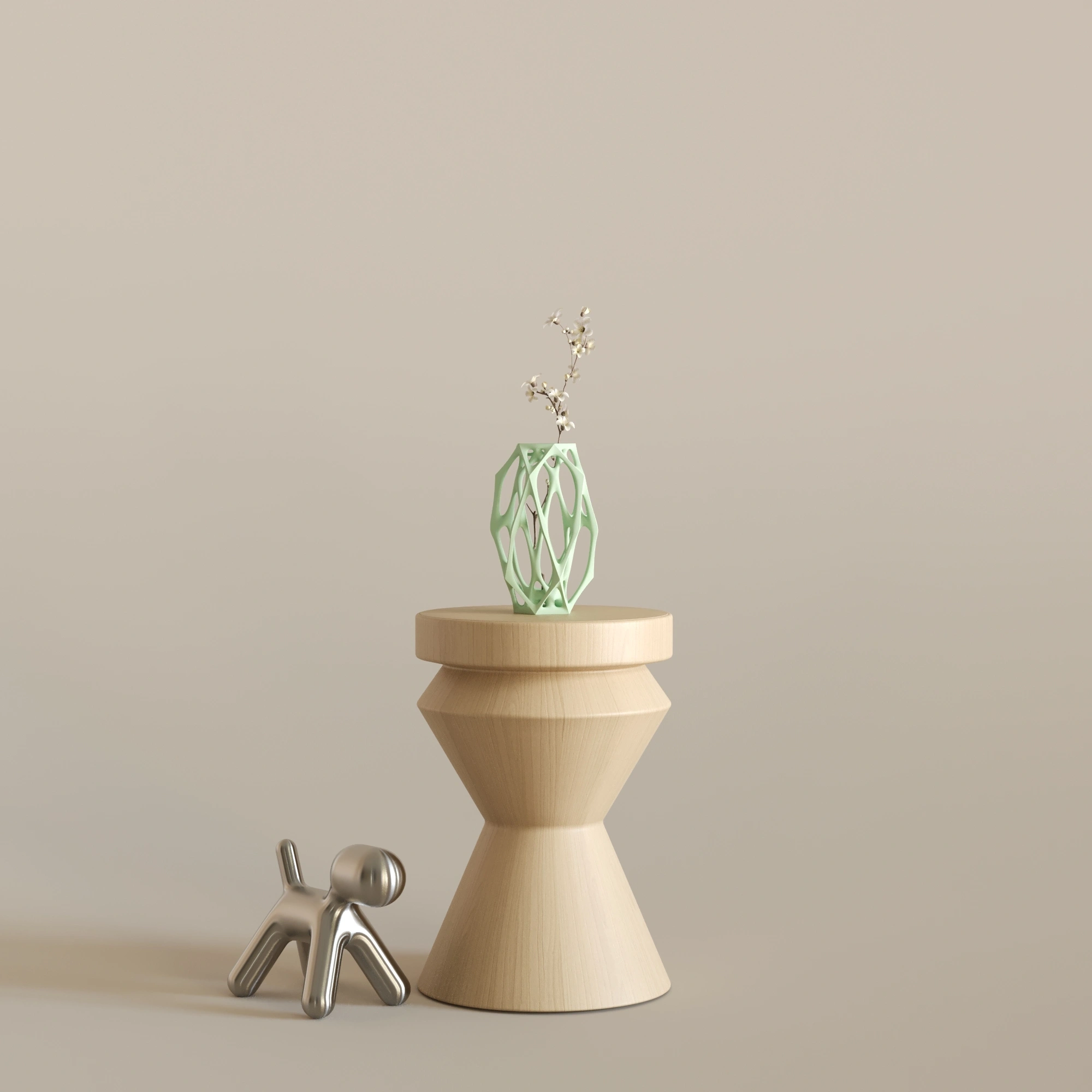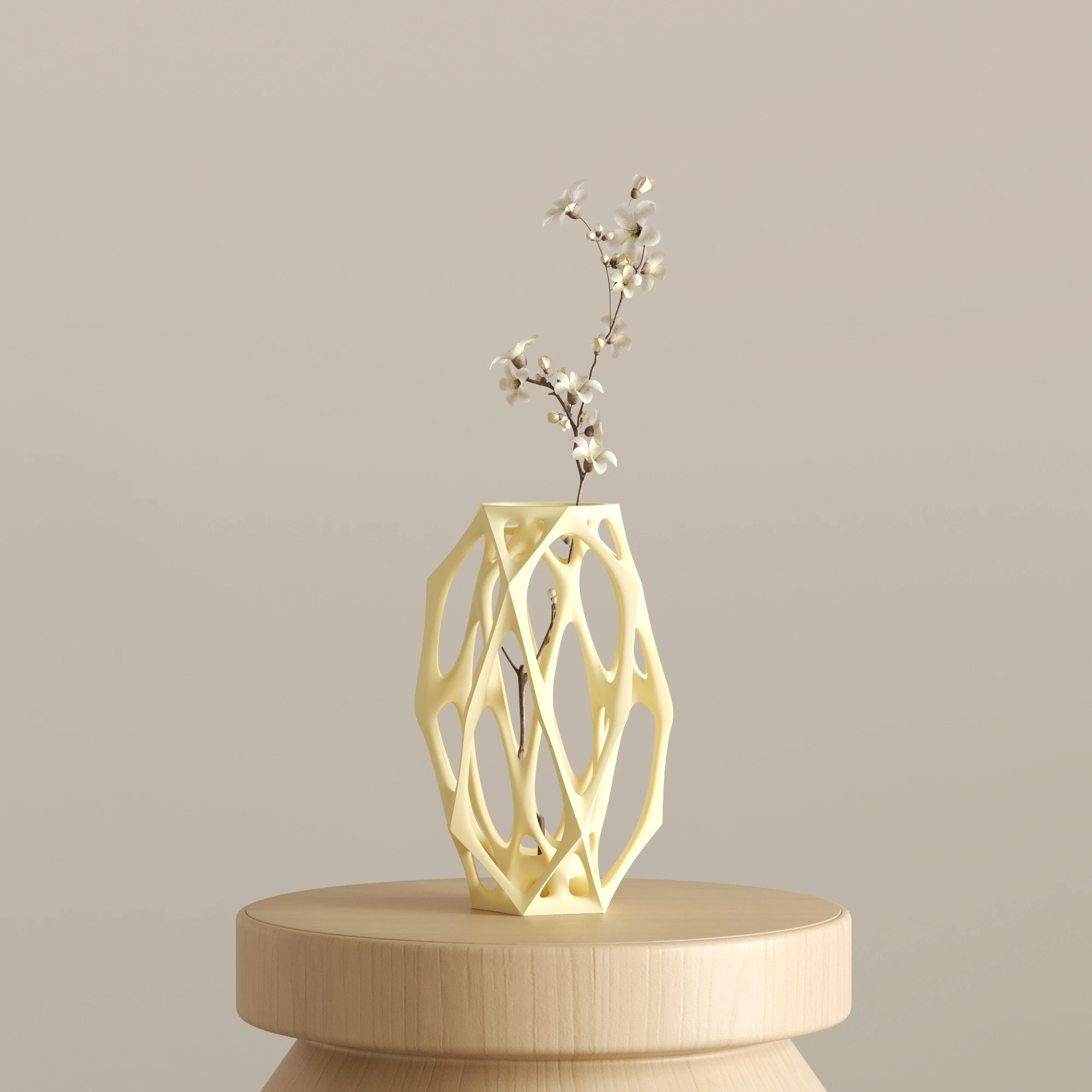 Vitreus, 9 cm x 9 cm x 19 cm ölçülerindedir. Bitkisel bazlı, doğada çözünebilen biyopolimer PLA malzemeden üretilmiştir. Cam veya seramik değildir. Hafif yapısına rağmen dayanıklı ve uzun ömürlü kullanım sunar. Dekoratif amaçlı tasarlanmıştır. Modern, minimal ve mimari dekorasyon anlayışını benimseyen yaşam alanları için zarif ve dengeli bir dekorasyon tamamlayıcısıdır.